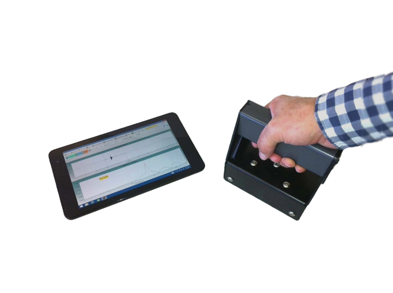 Beton laagdikte meten vanaf 1 zijde en localiseren van insluitingen of delaminatie. Opslag van gegevens op een Notepad en export en rapportage van data naar Excel. Meten tot 1800mm dikte.