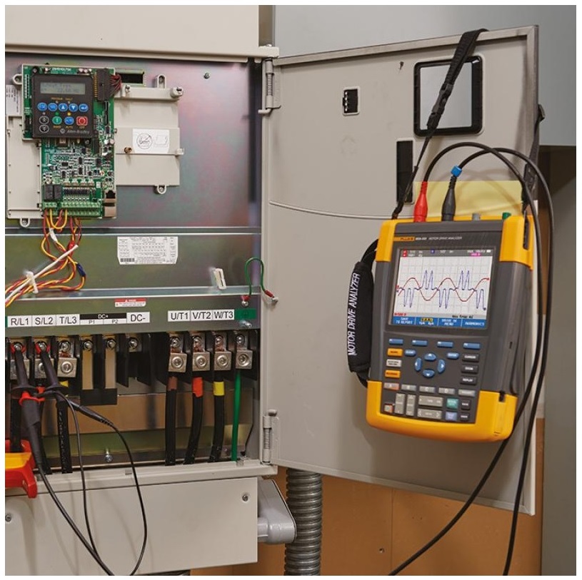 De Fluke MDA-550 is een veelzijdig meetinstrument voor het analyseren van problemen bij frequentieregelaars en motoraandrijvingen. Het instrument is voorzien van een ingebouwde Oscilloscoop tot 500MHz. Geheel wordt geleverd inclusief stroomtang 400 A / 3000 A.