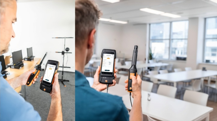 De Testo 400 behaaglijkheidsset biedt een complete, normconforme oplossing voor het bepalen van thermisch comfort (PMV/PPD) en binnenluchtkwaliteit volgens EN ISO 7730 en ASHRAE 55. Hiermee kun je comfortabelheidsparameters zoals tocht, turbulentiegraad, CO₂‑concentratie, luchtvochtigheid en luchttemperatuur effectief vastleggen en beoordelen.