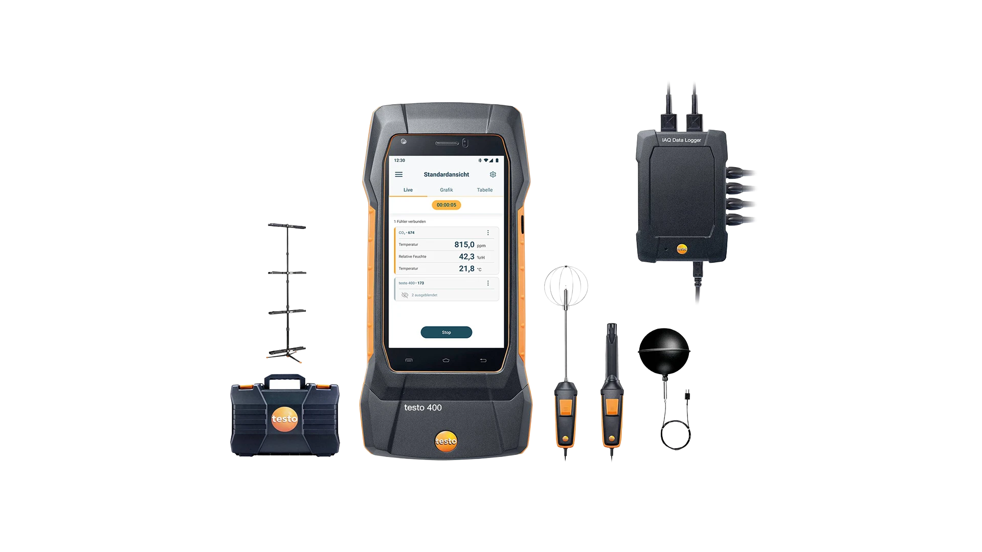 Meet behaaglijkheid eenvoudig en betrouwbaar met de Testo 400, speciaal voor het bepalen van PMV en PPD volgens EN ISO 7730 en ASHRAE 55. Beoordeel ook tocht en turbulentie met de bijgeleverde sondes. De set bevat een CO₂-sonde, turbulentiegraadsonde, globe-thermometer Ø 150 mm en een meetstatief voor normconforme plaatsing.