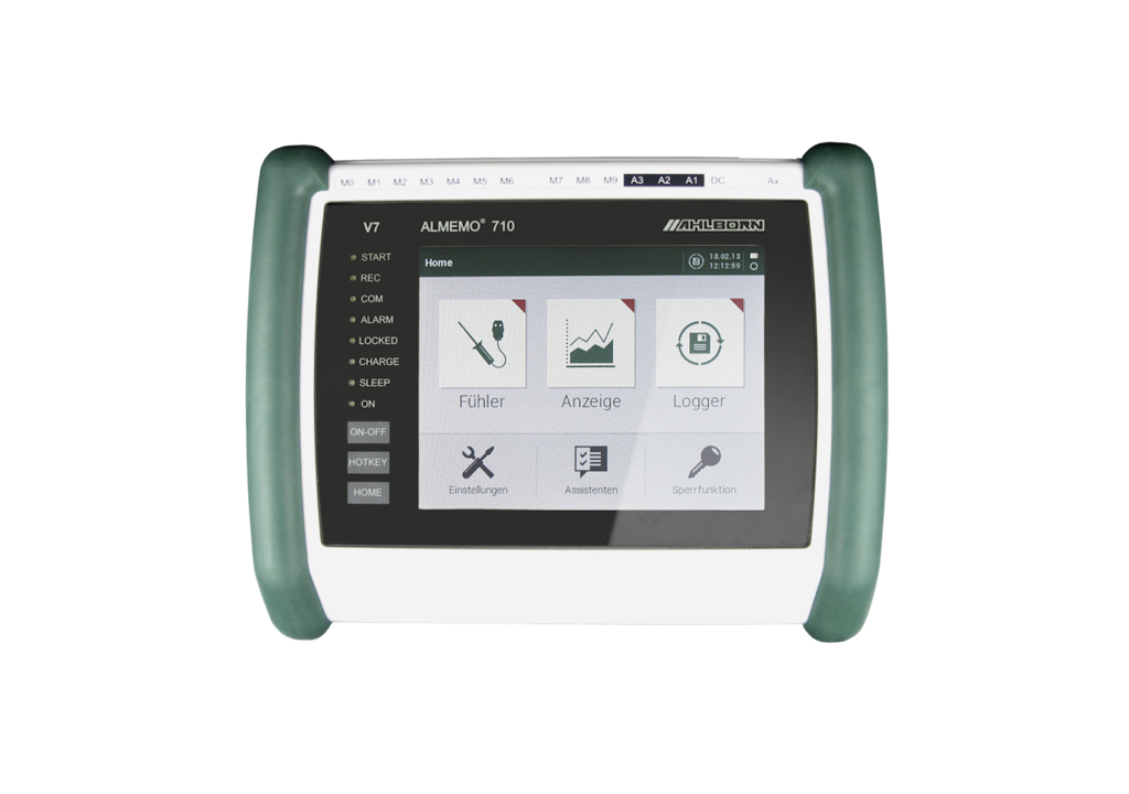 De Ahlborn ALMEMO 710 is een universele datalogger, speciaal ontwikkeld voor het uitlezen en opslaan van gegevens van uiteenlopende sensoren. De gemeten data wordt direct weergegeven op het grote, heldere touchscreen en kan zowel intern worden opgeslagen als op een SD-kaart. Het instrument kan tot 100 metingen per seconde uitvoeren.