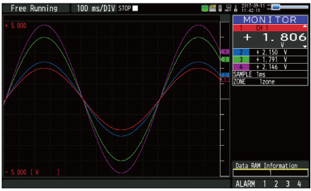 De GL2000 heeft 4 geïsoleerde kanalen, waarop sensoren kunnen worden aangesloten en waarbij het hoogste instelbare meetinterval 1μs is. De ingangen kunnen een groot bereik aan voltages meten van 20mV tot 1000 V DC en 10 mV tot 1000 V rms. Thermokoppels type K, J, E, T, R, S, B, N, W kunnen aan het instrument worden gekoppeld. De gemeten waarden worden opgeslagen op het interne geheugen (4GB flash) of op een extern geheugen (SD card of USB stick).
