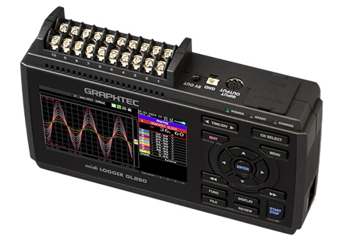 De GL260 is een compacte standalone datalogger met 10 meetkanalen. Het heeft een geïsoleerd ingangssysteem dat ervoor zorgt dat signalen niet worden beïnvloed door signaalingangen op andere kanalen. De multifunctionele ingangen maken gecombineerde metingen van verschillende meetvariabelen mogelijk, zoals spanning, temperatuur, luchtvochtigheid, logic en pulse.