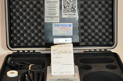 De Metesco dataprinter is een Meetinstrument met ingebouwde printer. Op deze unit is het mogelijk om 2 druksensoren gelijktijdig aan te sluiten. De gegevens worden op een grafiek geprint in lineaire vorm, waar de start de printer eerst de datum, tijd, meetgegevens, sensor gegevens en grafiekbreedte weergeeft. Vervolgens print de meter elke 4 minuten een reeks aan meetwaarden welke gedurende die tijd is opgeslagen. Standaard is de meetinterval ingesteld op 1 seconde wat sneller kan naar wens. Deze opgeslagen gegevens worden elke 4 minuten geprint.