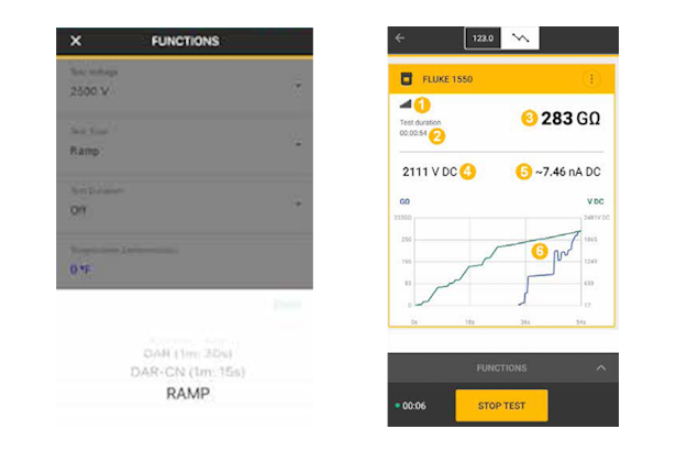 Met de Fluke Connect® Mobile App bespaart u tijd en verhoogt u de productiviteit bij het gebruik van de Fluke 1555 FC 10kV isolatietester. Registreer meetwaarden tot op 15 meter afstand op uw smartphone.