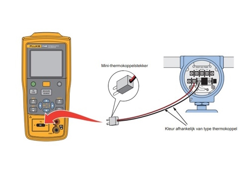 De Fluke 714B is een nauwkeurige thermokoppel kalibrator voor het meten en simuleren van 17 varianten thermokoppels incl. mV signaal.